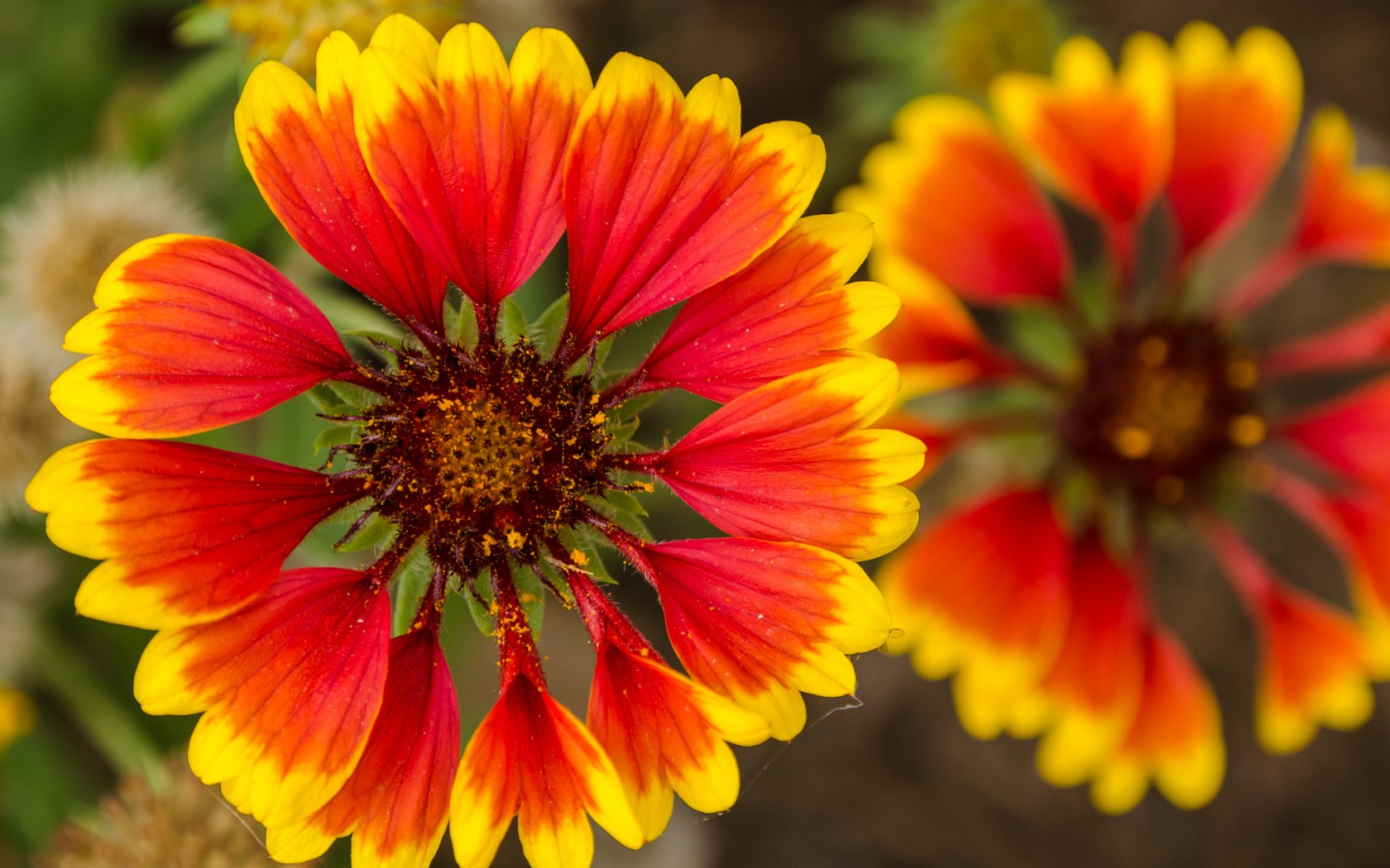 Description: A close up of a flower with a lot of colors on it's petals and a yellow center.