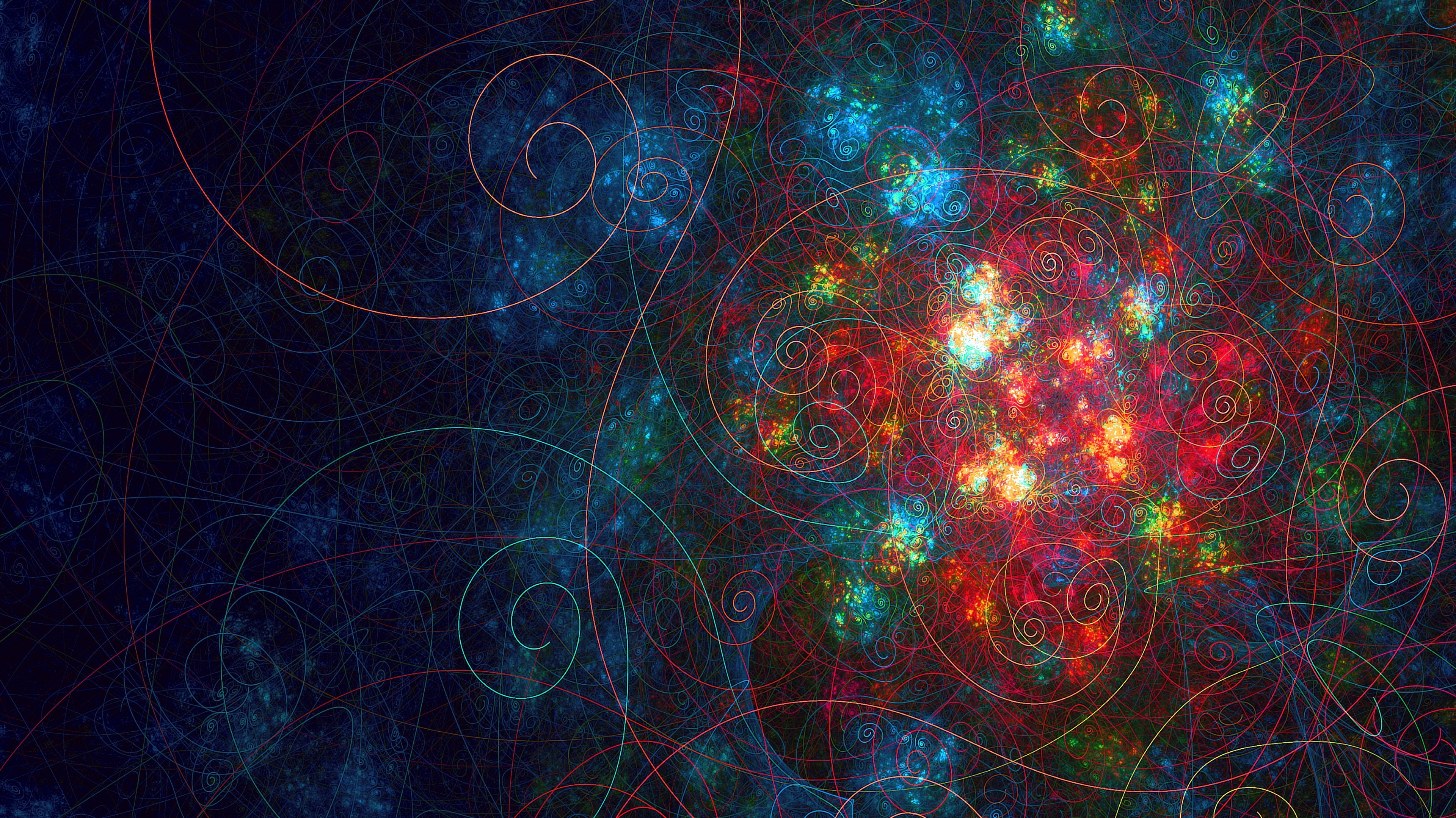 Description: A computer generated image of a colorful pattern with swirls and bubbles in blue.