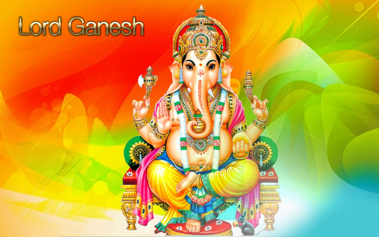 Description: A colorful ganeshi background with a colorful background and a ganeshi image on it's side.