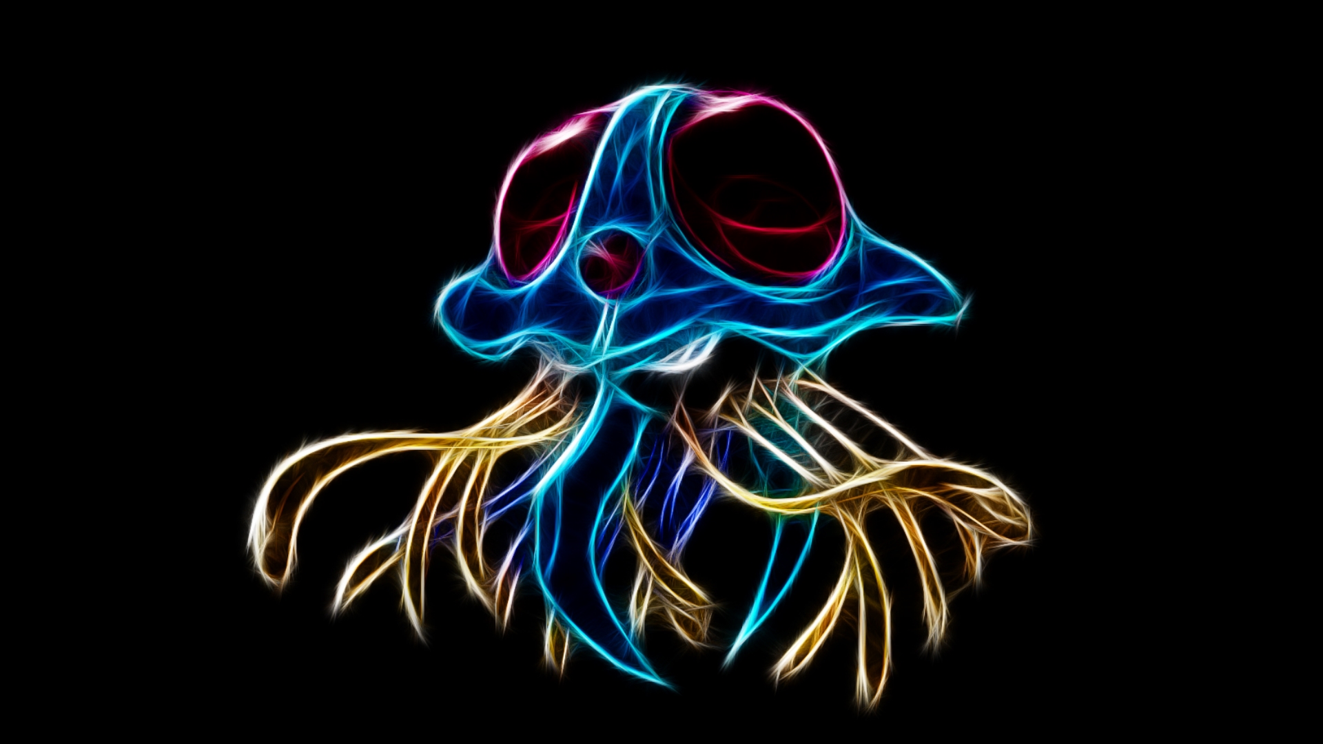 Description: A colorful jellyfish with a black background and a black background with a red.