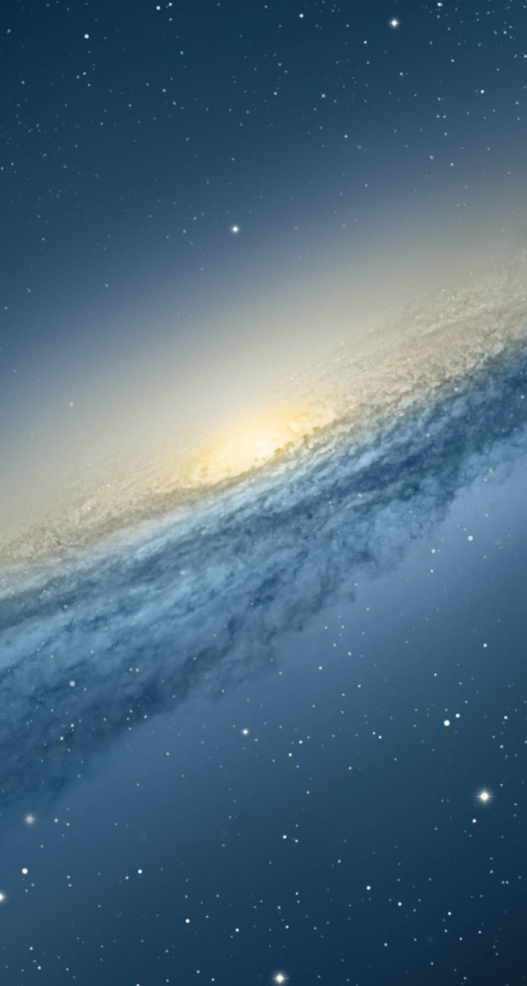 Description: A very large and colorful object in the sky with stars around it and a bright light shining on the side of the object.