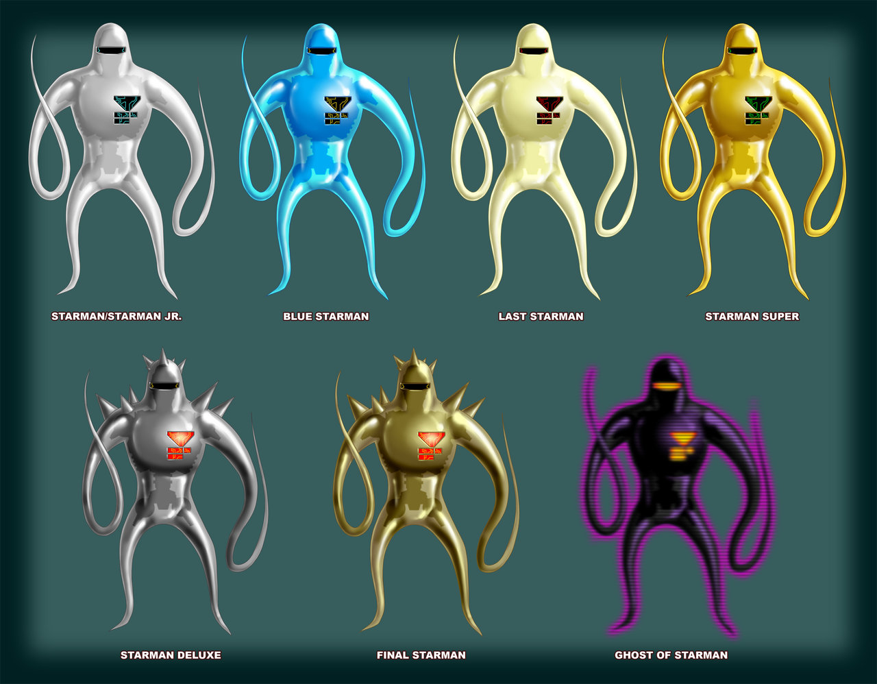 Description: A group of different colored and black and white items with a blue background and a green background with a black border.