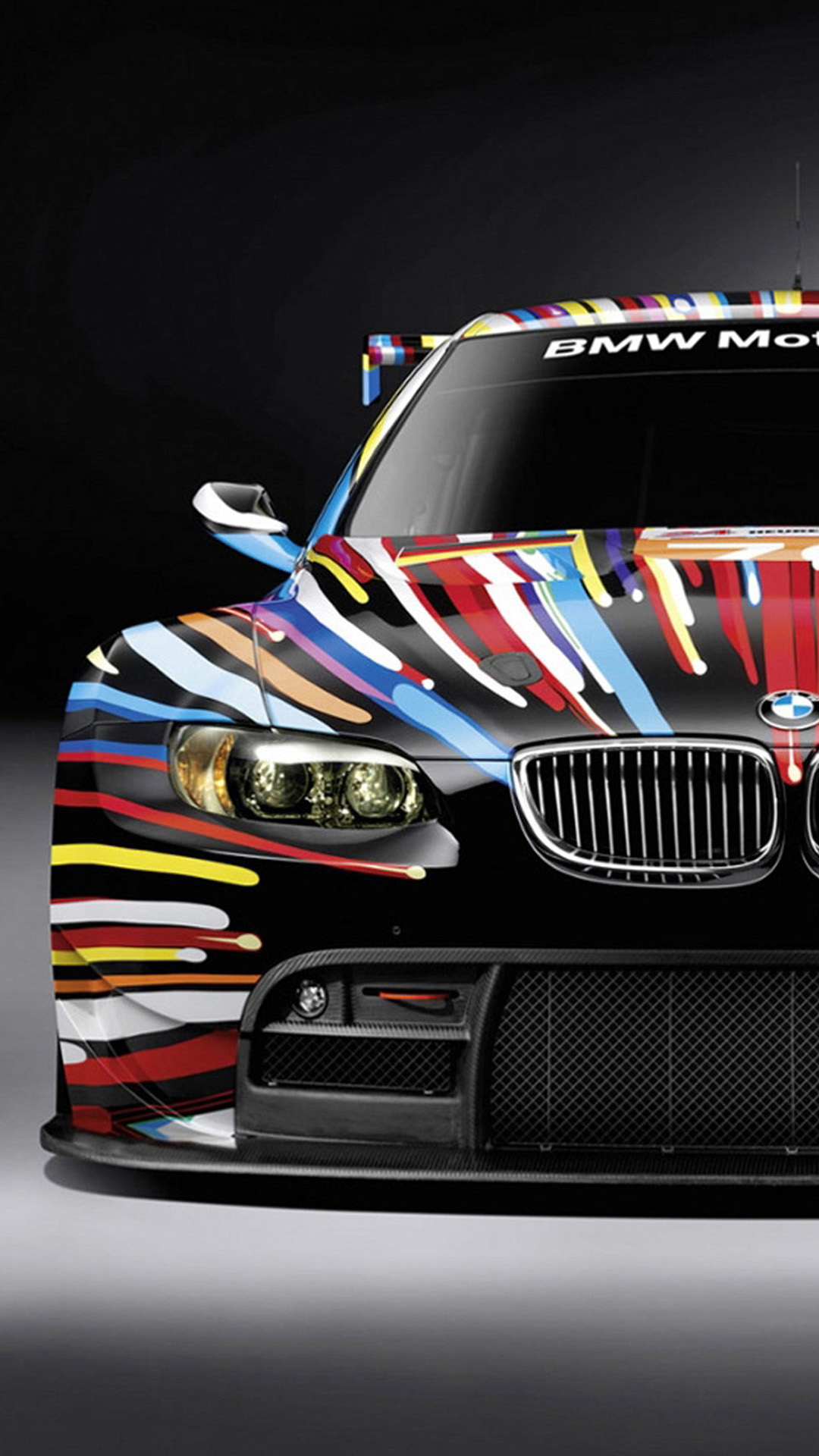Description: A car with a lot of colorful ribbons on it's hood and hood hoods on it's hood.