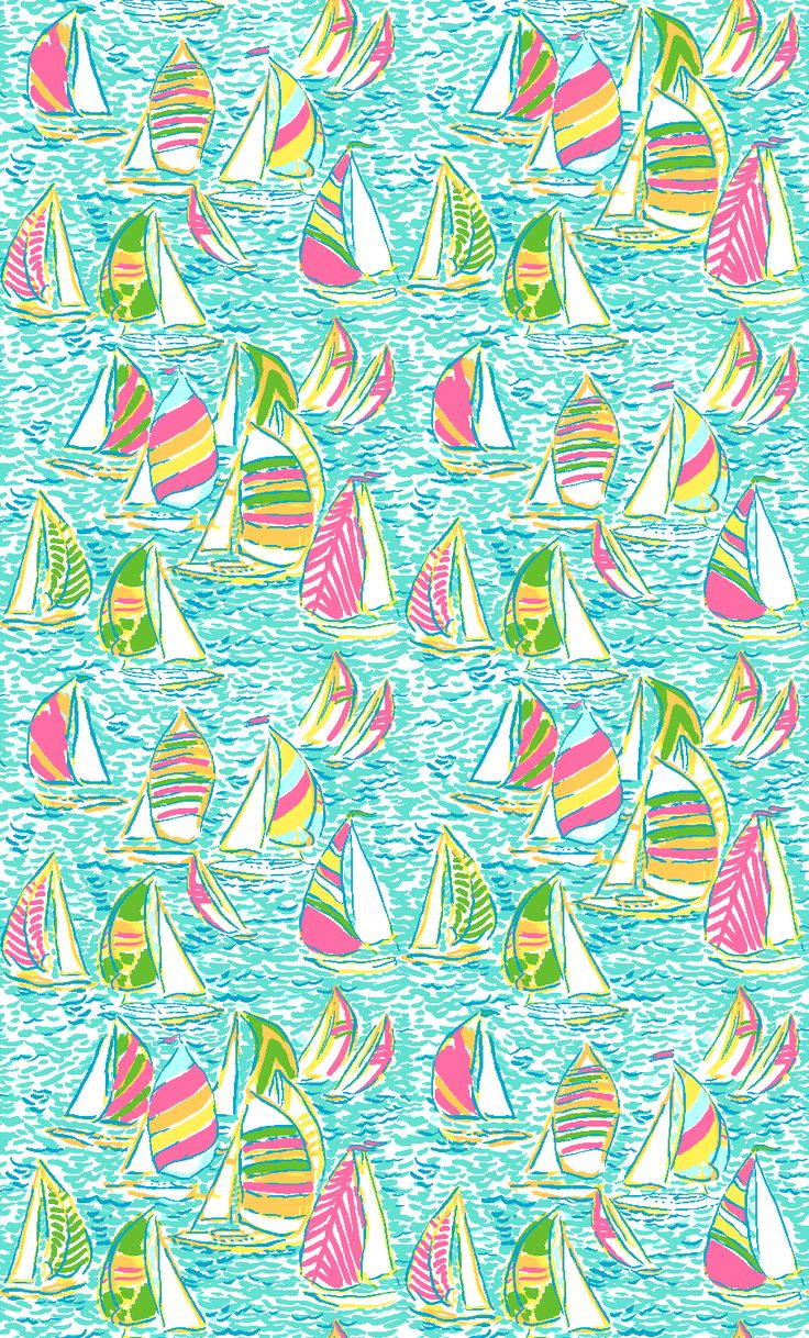Description: A colorful pattern of sailboats in the ocean with a blue background and a white background with a green.