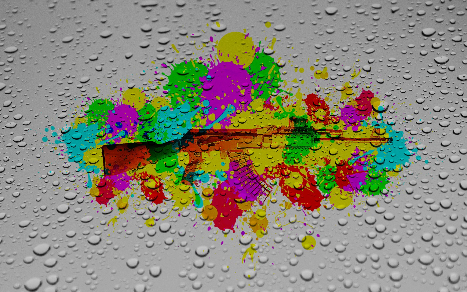 Description: A colorful background with water drops and a colorful object on the surface of the water droplets are multicolored.