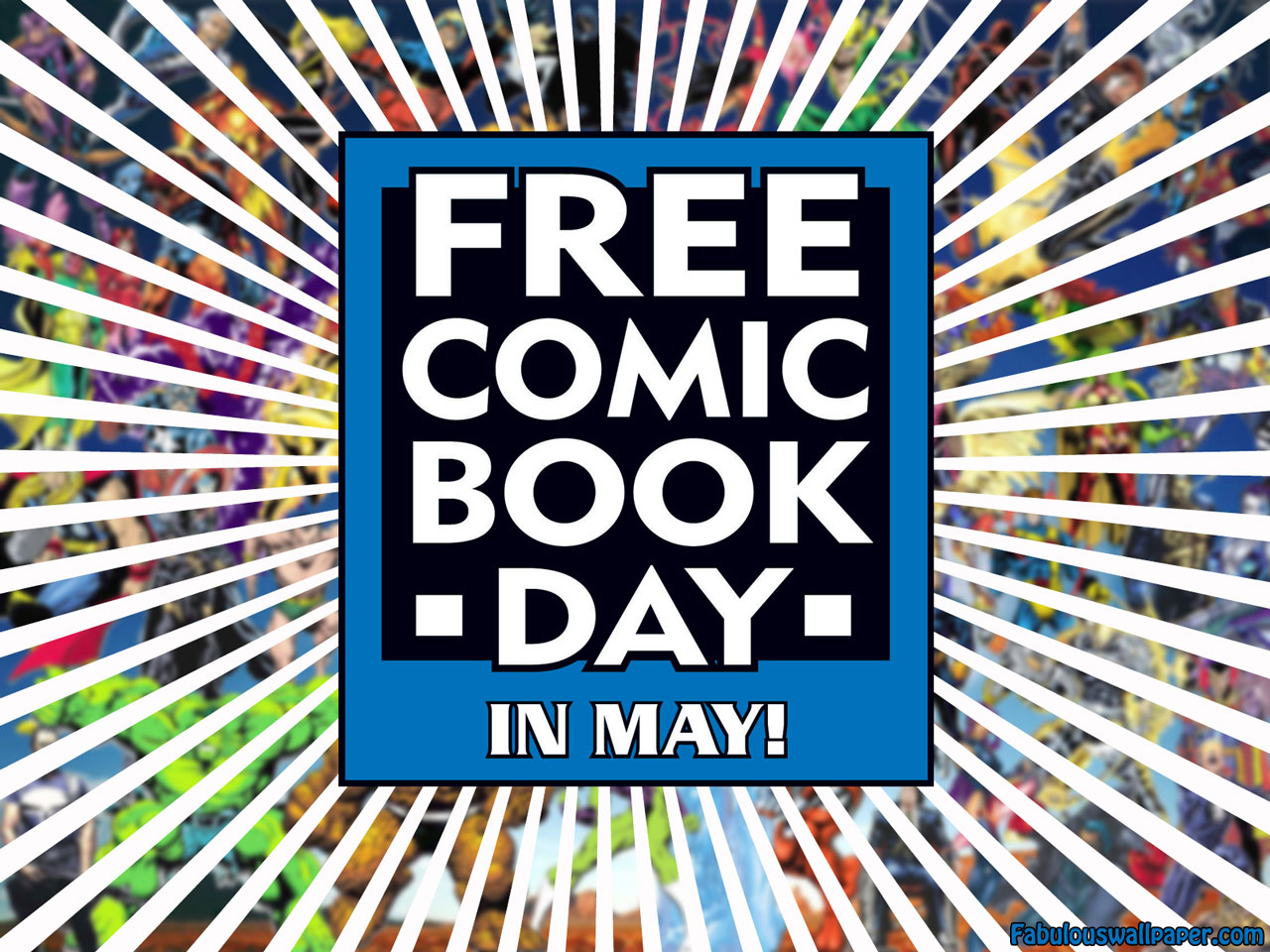 Description: A poster with a comic book cover in the middle of it with a large amount of comic books in the background.