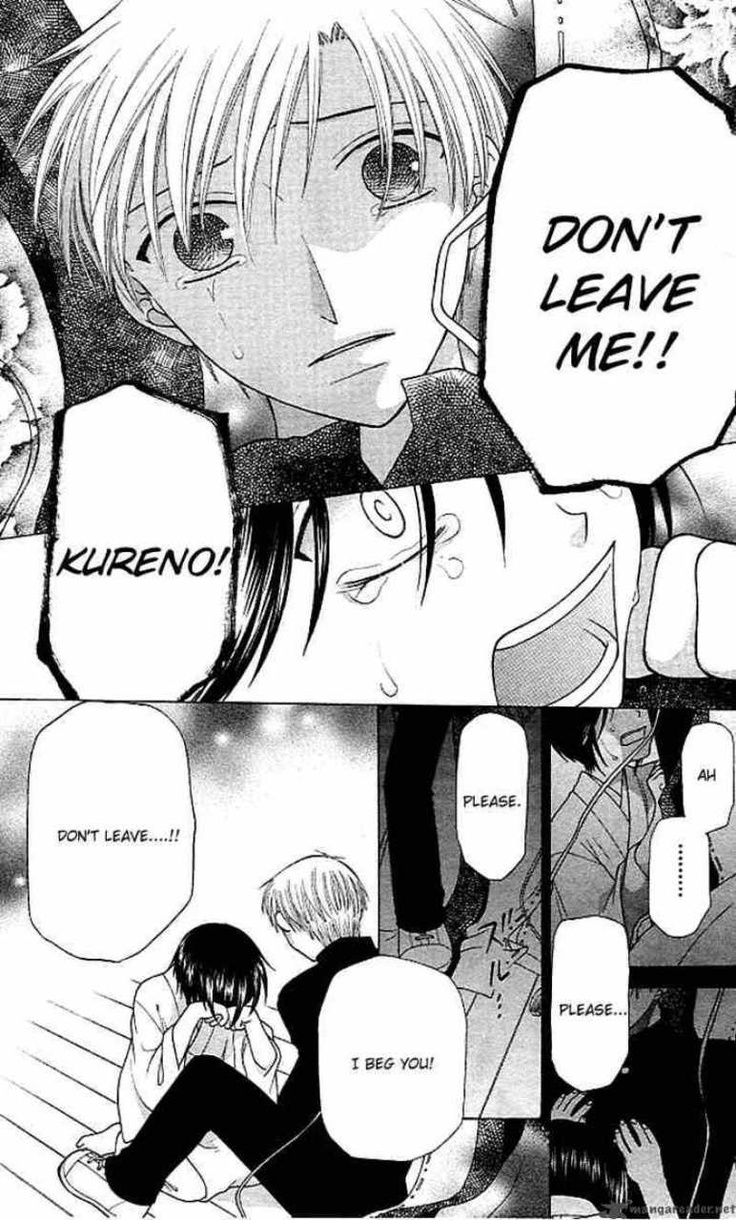 Description: A page from a comic with a girl and a guy kissing and another guy holding a sign that says don't leave me.