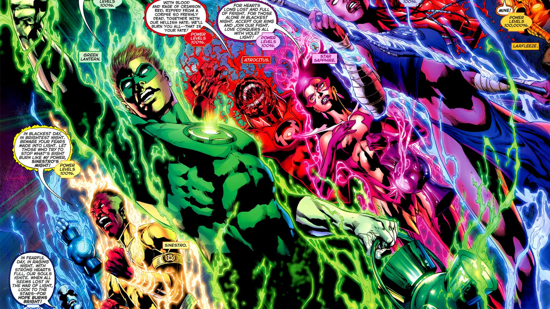 Description: A comic page with a bunch of different characters in it and a comic strip above it that says.