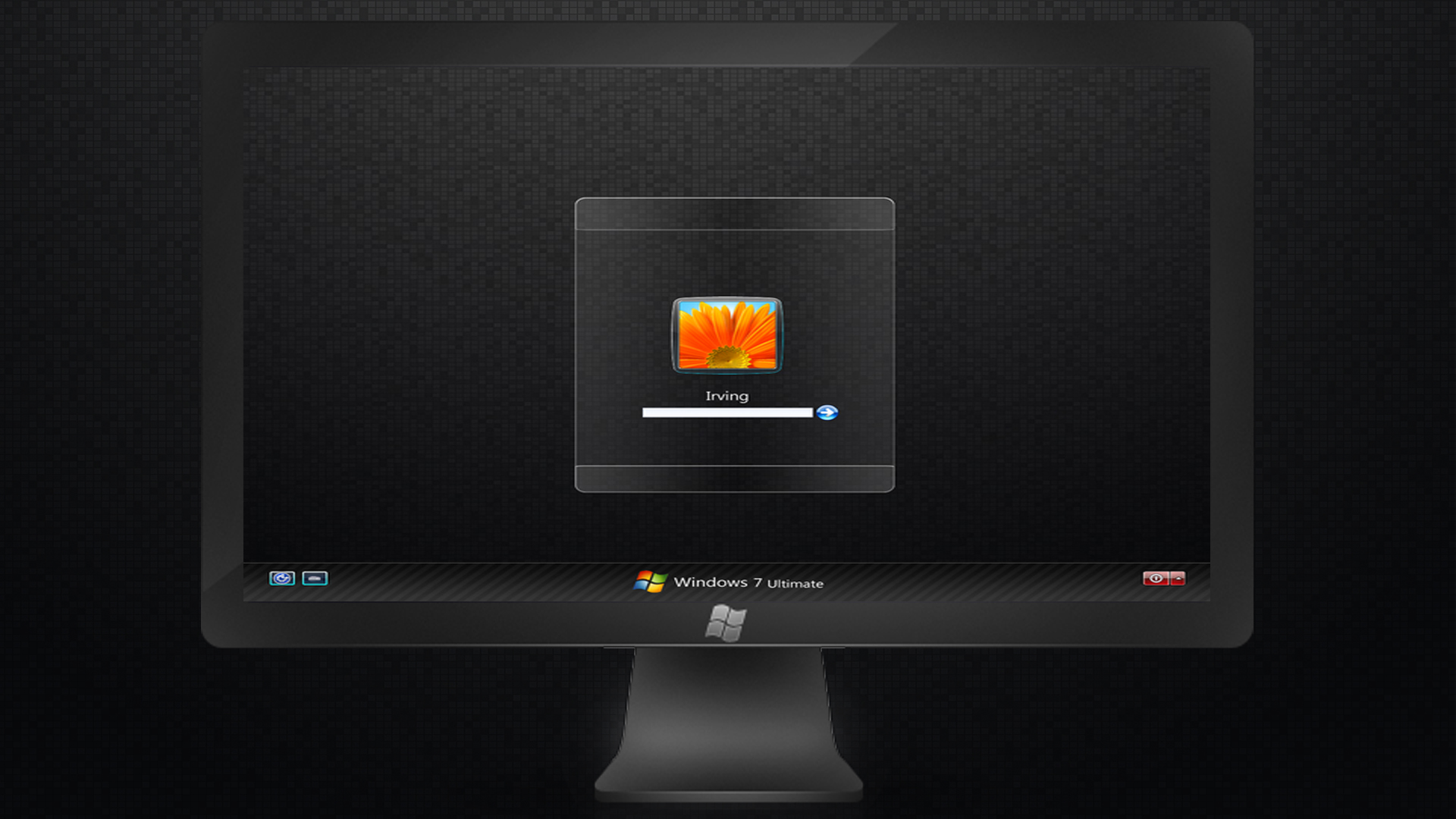 Description: A computer screen with a black background and a red and orange design on it's screen and a black background.