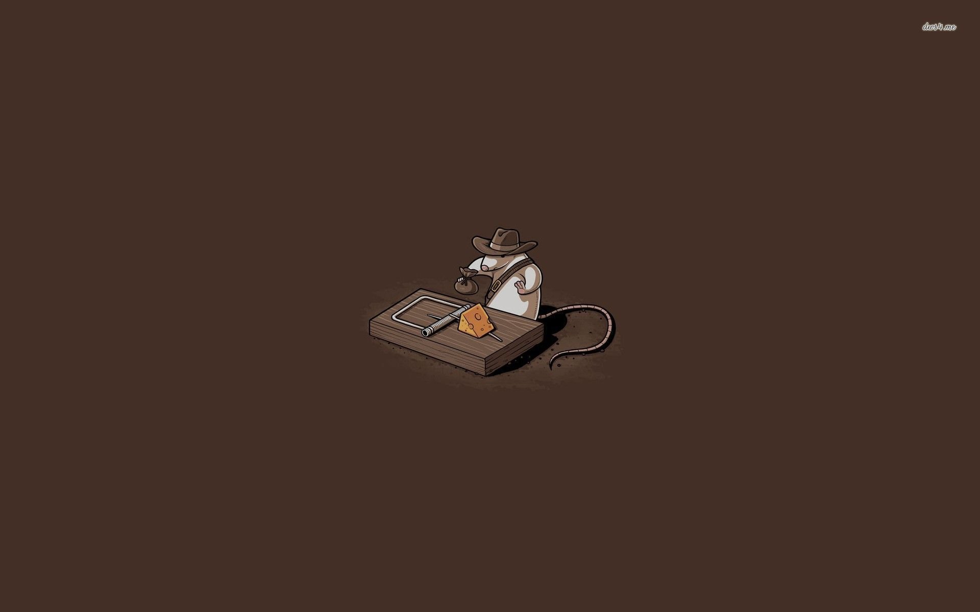 Description: A computer mouse with a cowboy hat on top of it's head and a mouse on the mousepad.