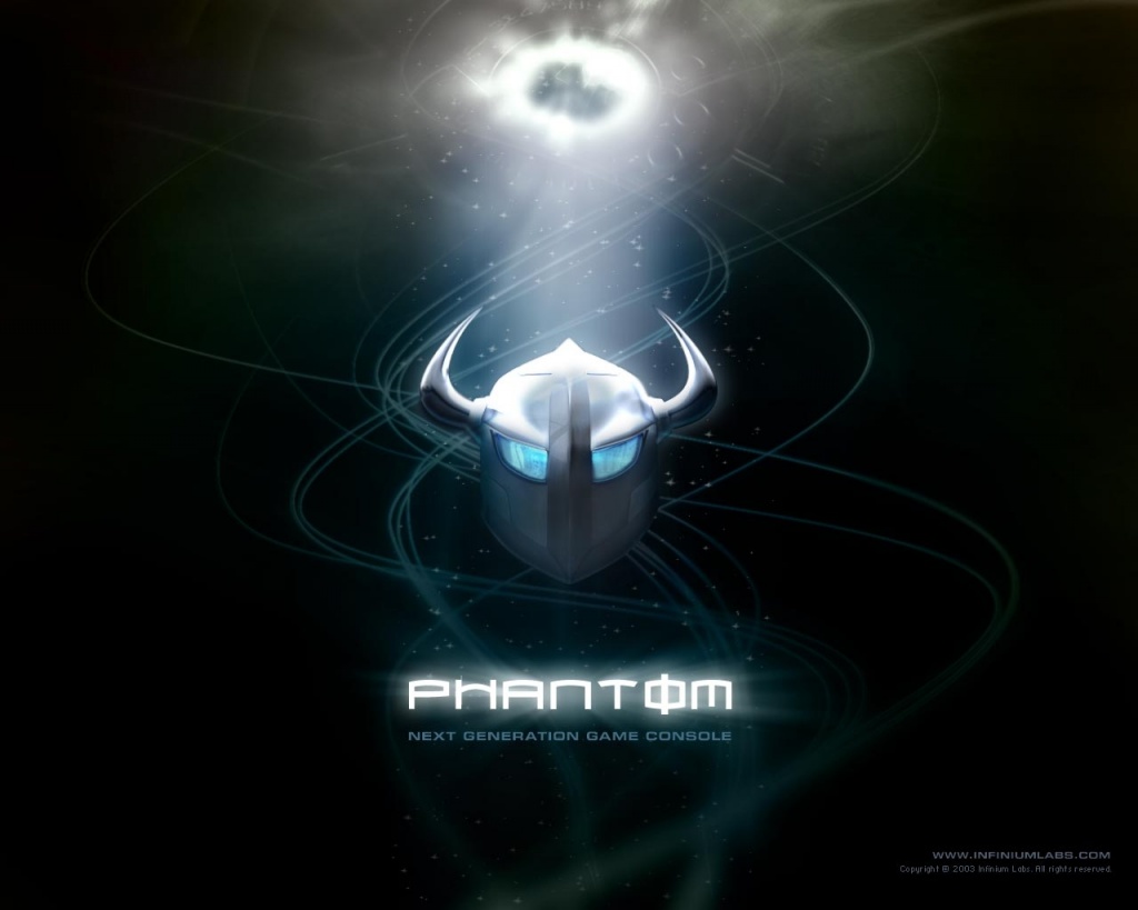 Description: A computer generated image of a computer mouse with a light shining on it's face and the word phantom.