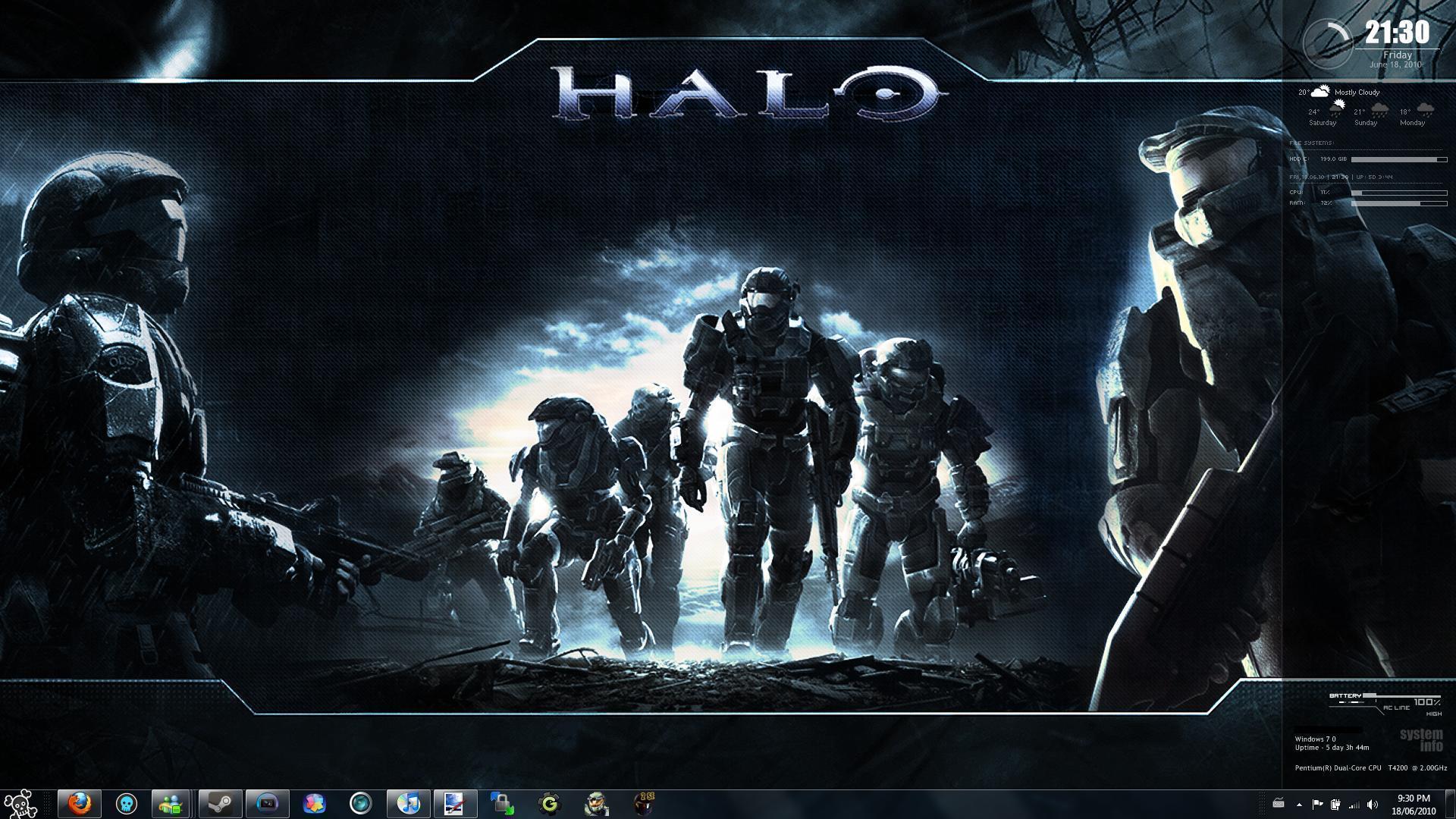 Description: A computer screen with a group of people in the background of a picture of halo and halo 2 on it.
