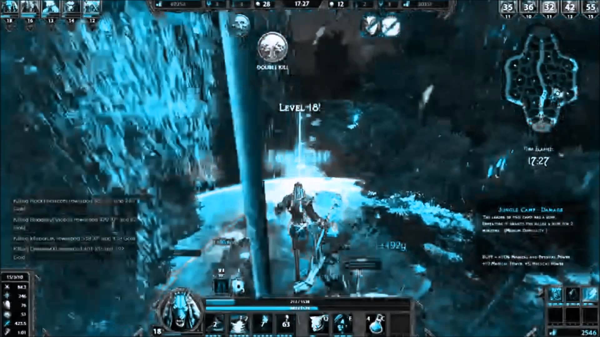 Description: A computer screen with a man standing on a hill in the middle of a forest with a blue background.