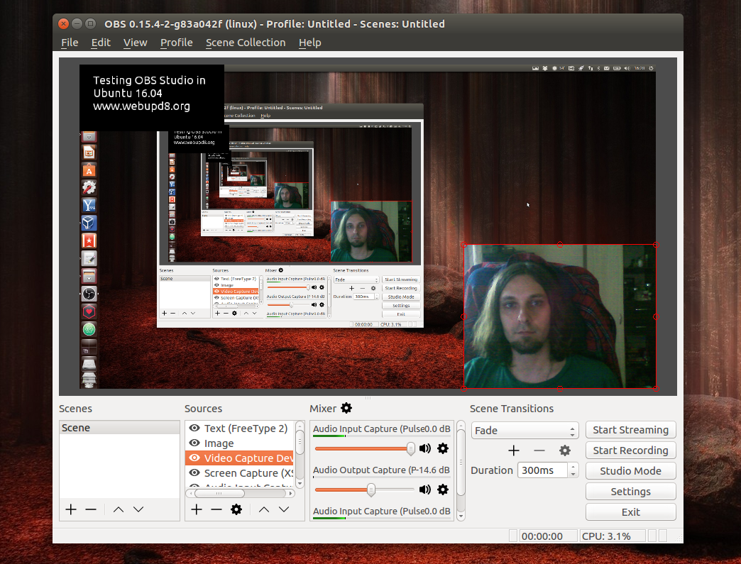Description: A computer screen with a picture of a man on it's face and a video of a woman on the screen.