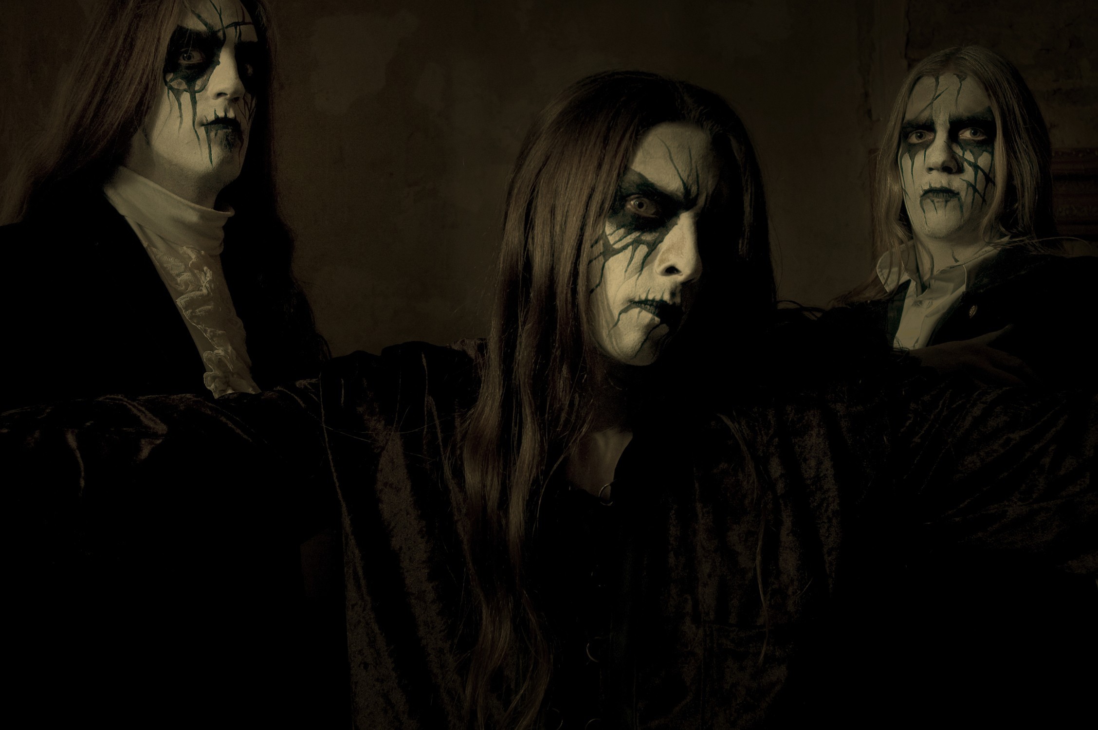Description: Three people dressed in costumes with makeup on their faces and hands.