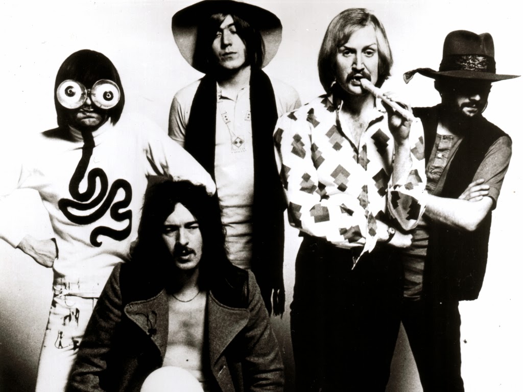 Description: A group of people standing next to each other wearing costumes and hats on their heads and shoulders.
