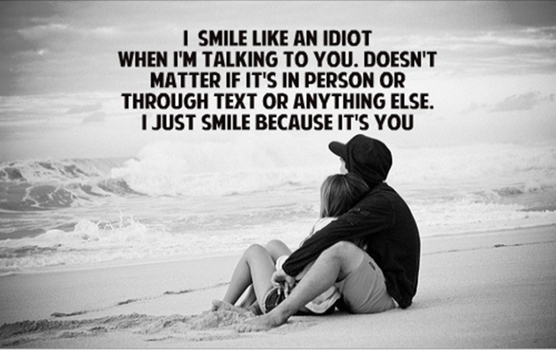 Description: A couple sitting on the beach with a quote about love and life in the background of the photo.
