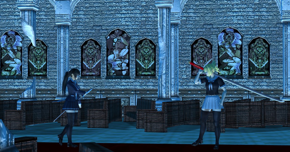 Description: A couple of people standing in front of a building with a clock on it's side and a flag.