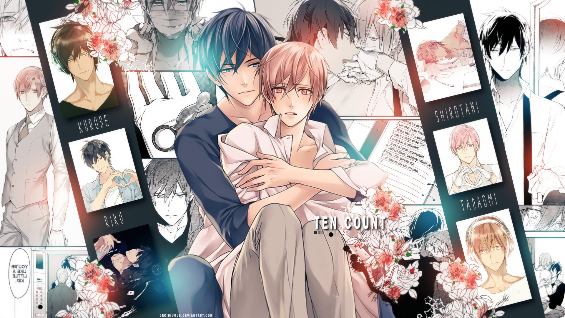 Description: A couple of people that are hugging each other in front of a picture frame with flowers on it and a piano.