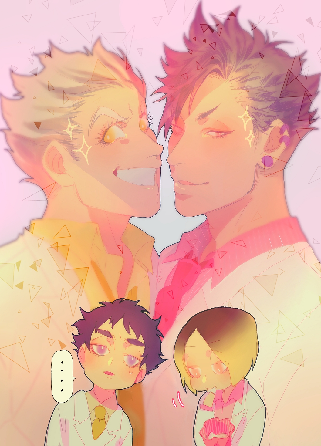 Description: A couple of people that are kissing each other with a pink background behind them and a pink background behind them.
