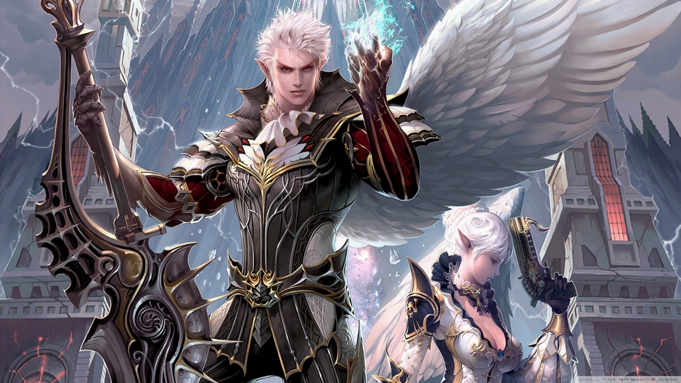 Couple people castle wings sword - free wallpaper for desktop | 5desktop.com