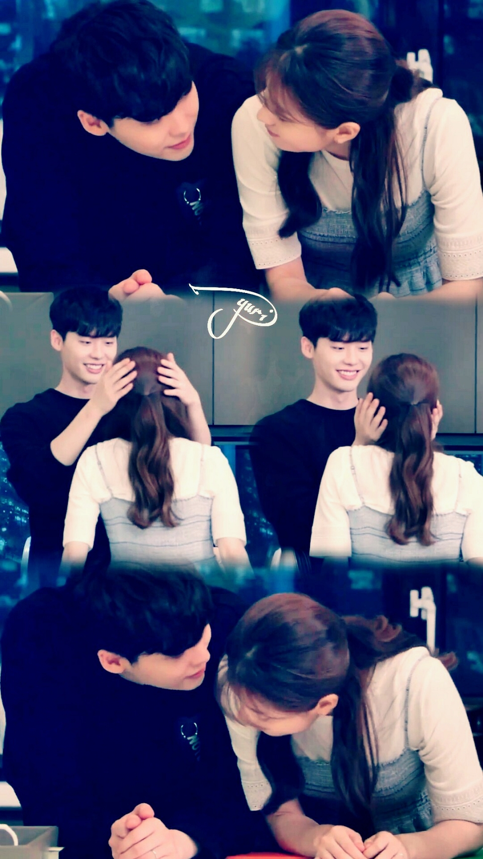 Description: A couple of people sitting next to each other in a room with a wall behind them and a woman touching her hair.