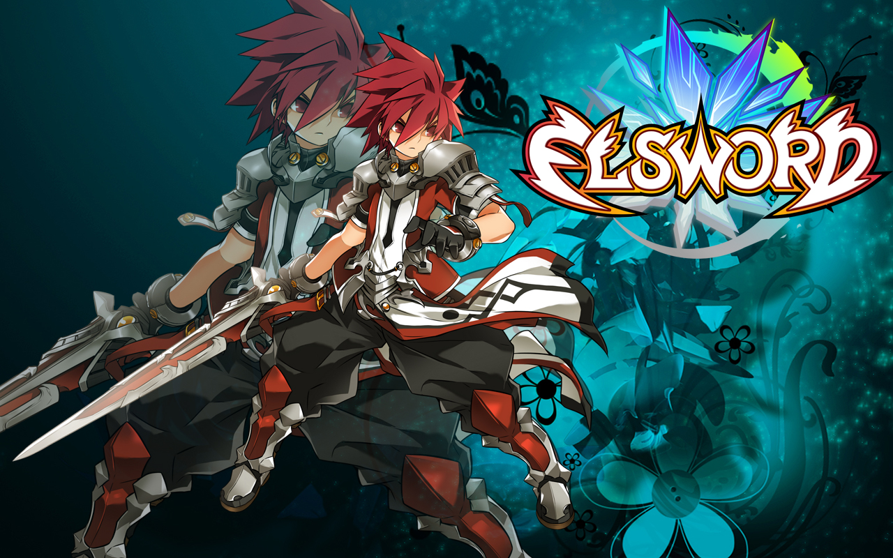 Description: A couple of people standing next to each other in front of a blue background with flowers and a sword.