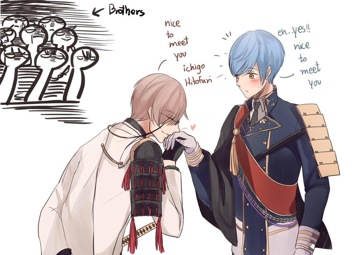 Description: A couple of people standing next to each other in front of a white background with a drawing of a man in a blue suit.