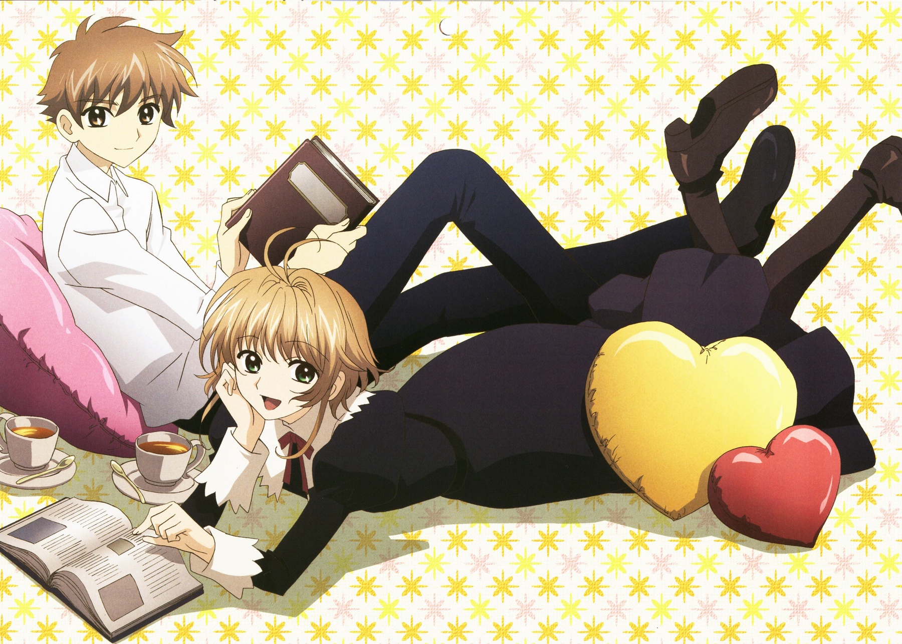 Description: A couple of people laying on the ground with a book and a cup of coffee in hand and a heart.