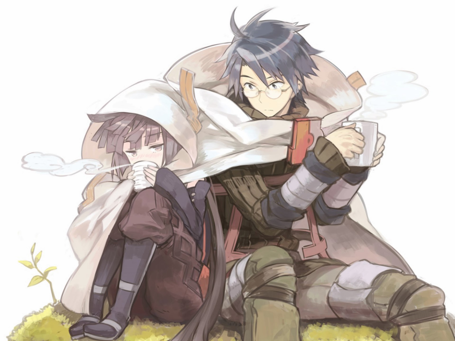 Description: A couple of people sitting on top of a grass covered field next to each other with a book in their hands.