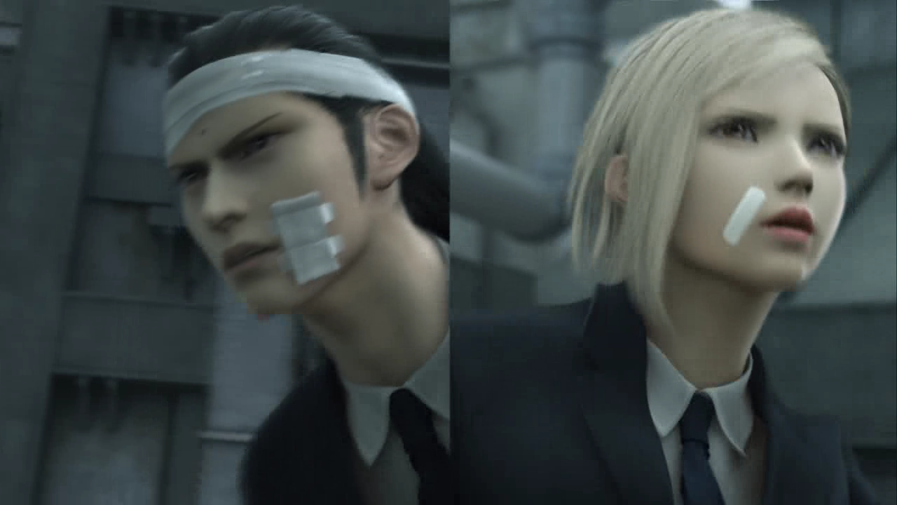 Description: A couple of people with white tape on their faces and nose pieces in their mouths.