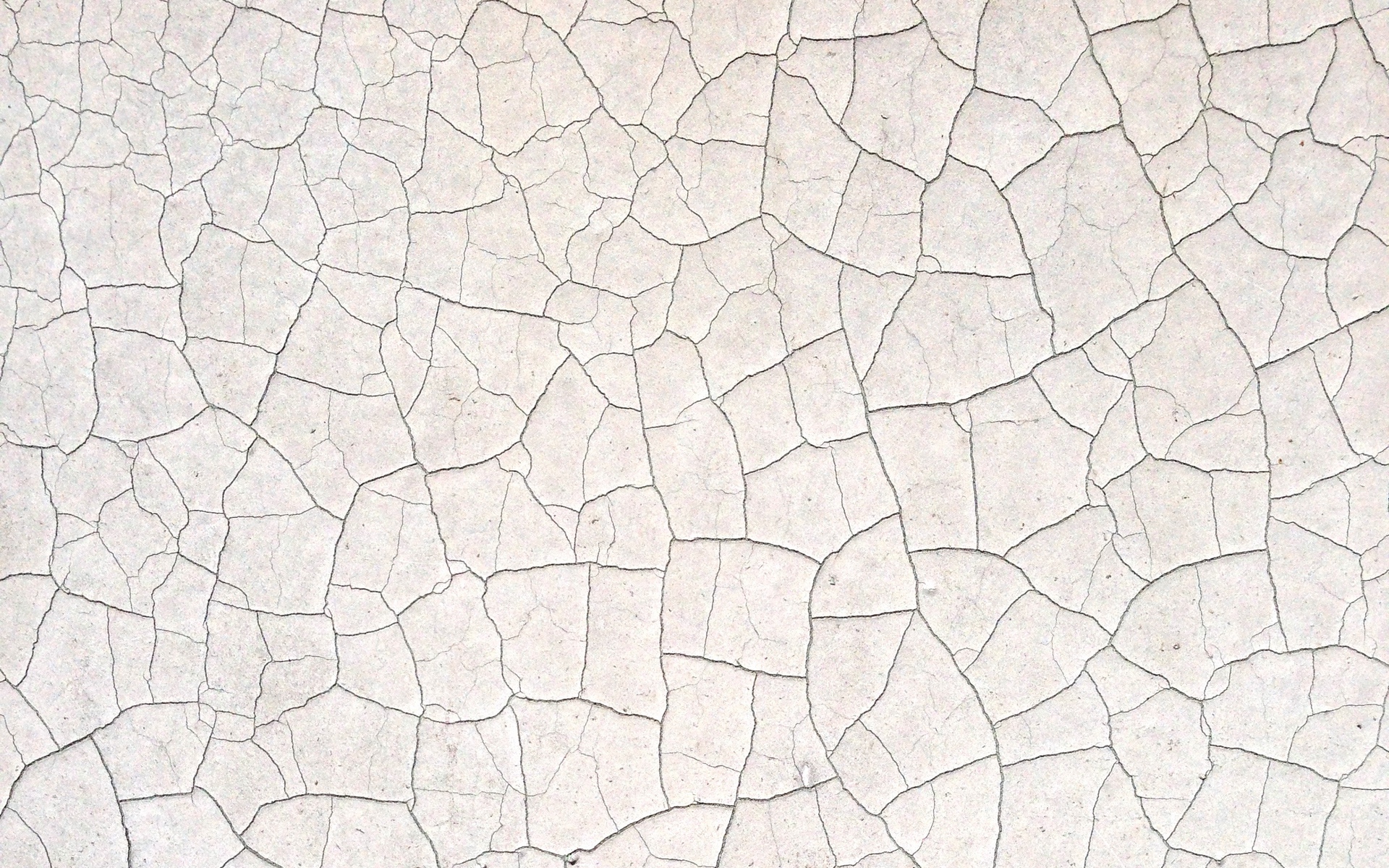 Description: A white wall with cracks and a black cat on the ground next to it and a black cat on the ground.