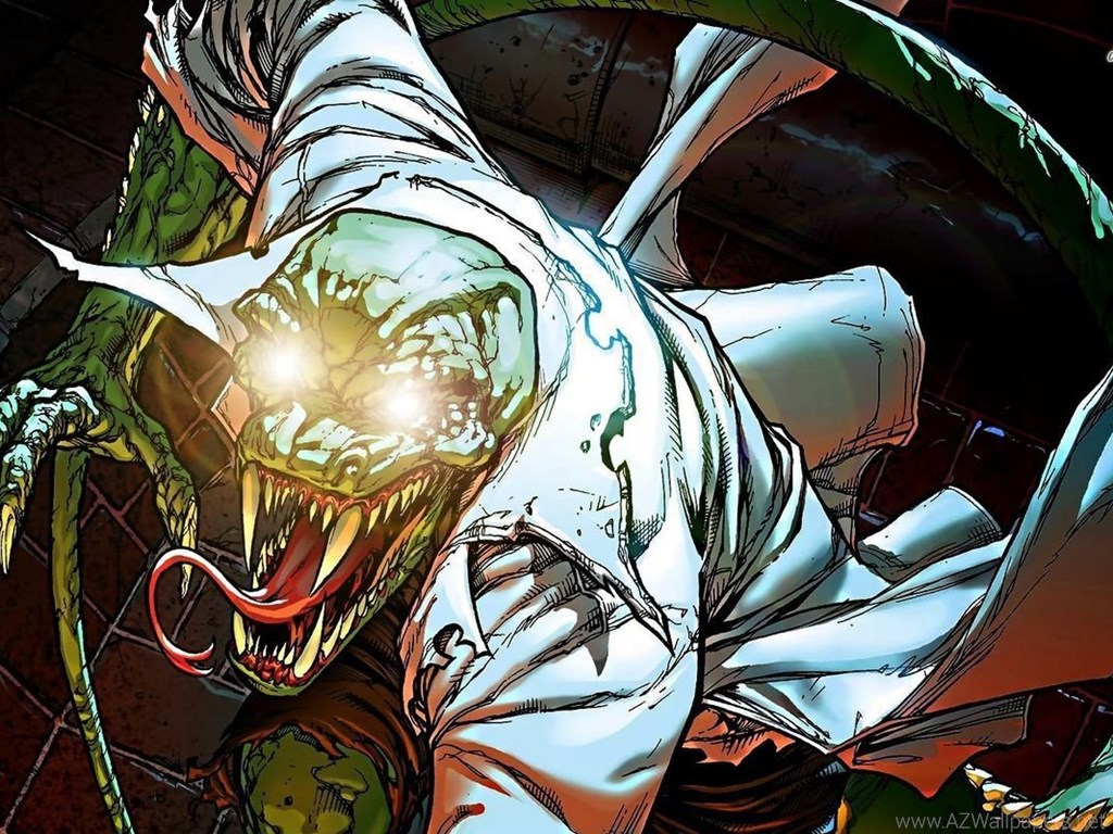 Description: A creepy creature with a light on its face and a green snake around it's neck.