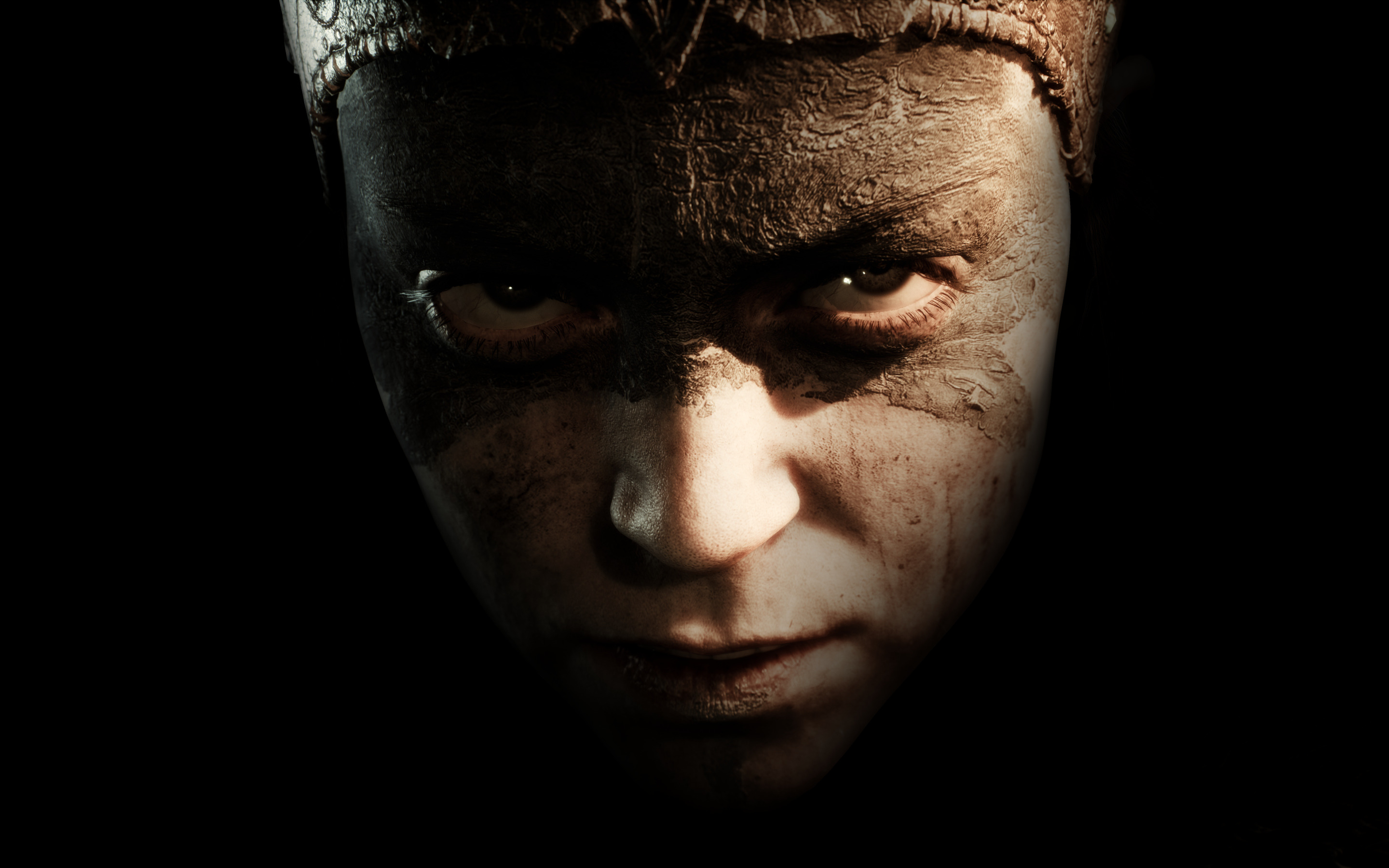 Description: A man with a creepy look on his face and hair is shown in the dark with a black background.