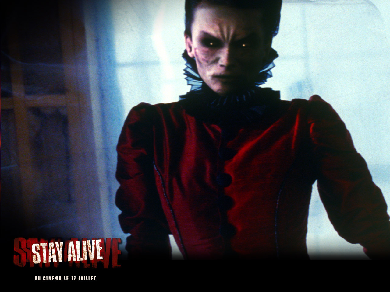 Description: A creepy looking man in a red outfit with a creepy look on his face and chest.