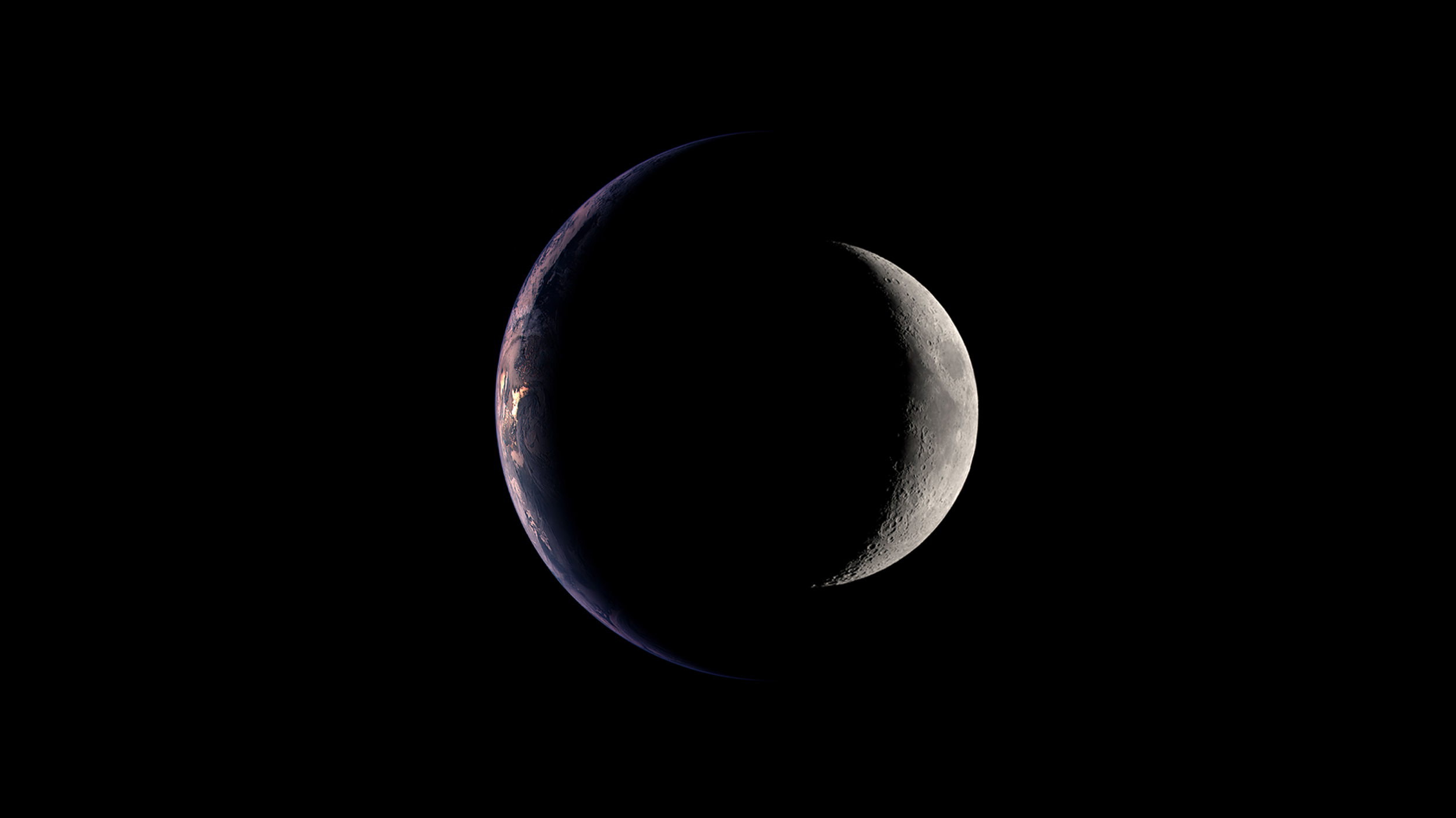 Description: A crescent moon in the dark sky with a dark background and a black background with a white crescent in the center.