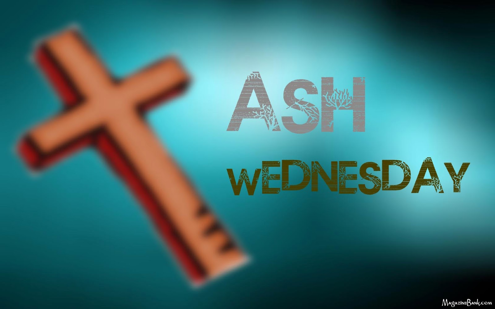 Description: A cross with the words ash wednesday on it and a blurry background with the word ash wednesday on it.