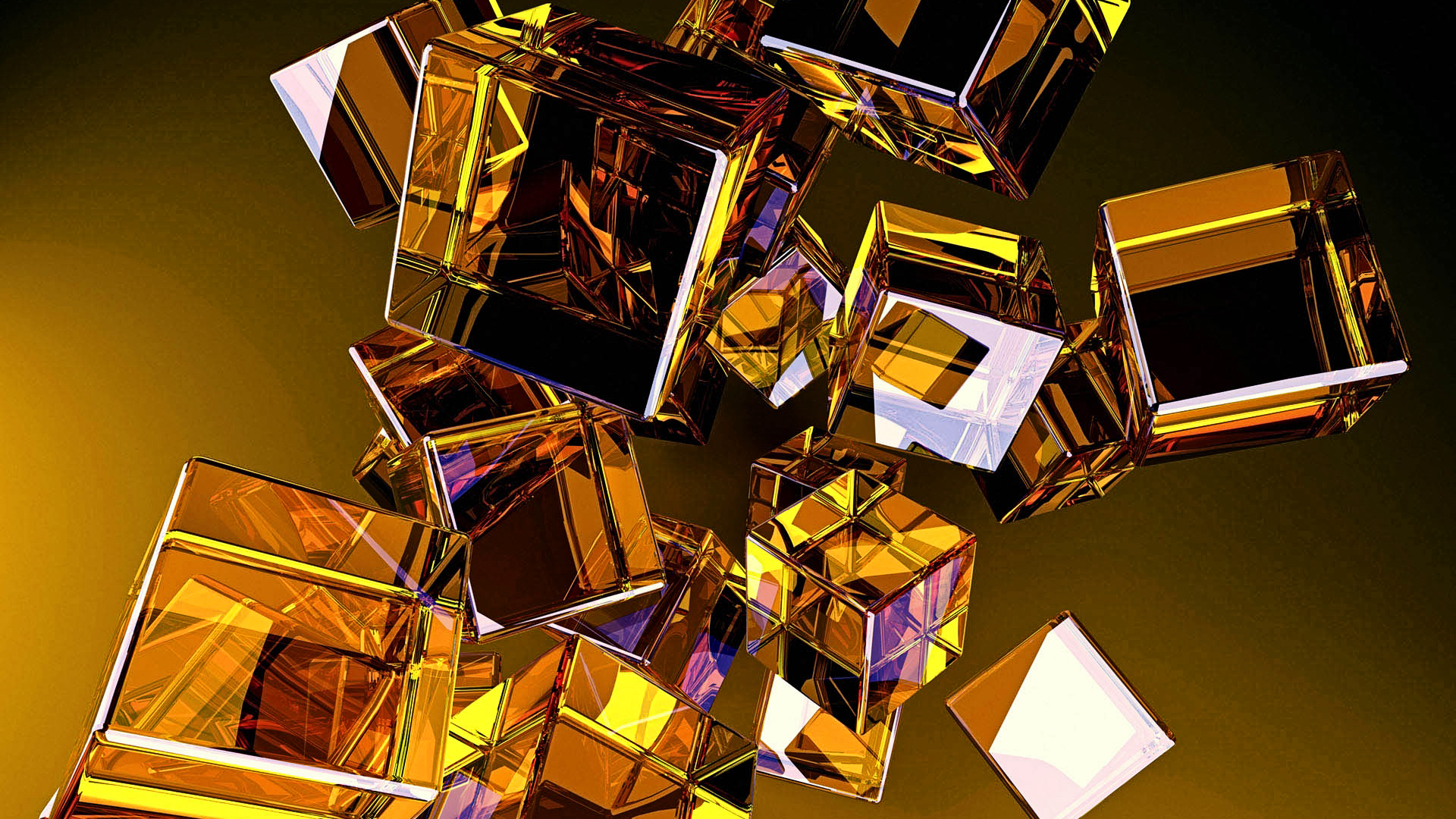 Description: A bunch of cubes that are in the air together on a yellow background with a black background and a yellow background.