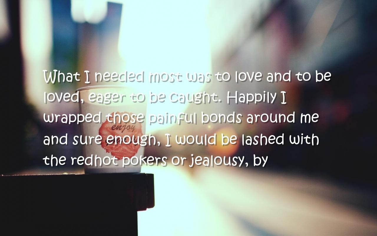 Description: A picture of a cup with a flower on it with a quote from the book what i need most to love and to be loved.
