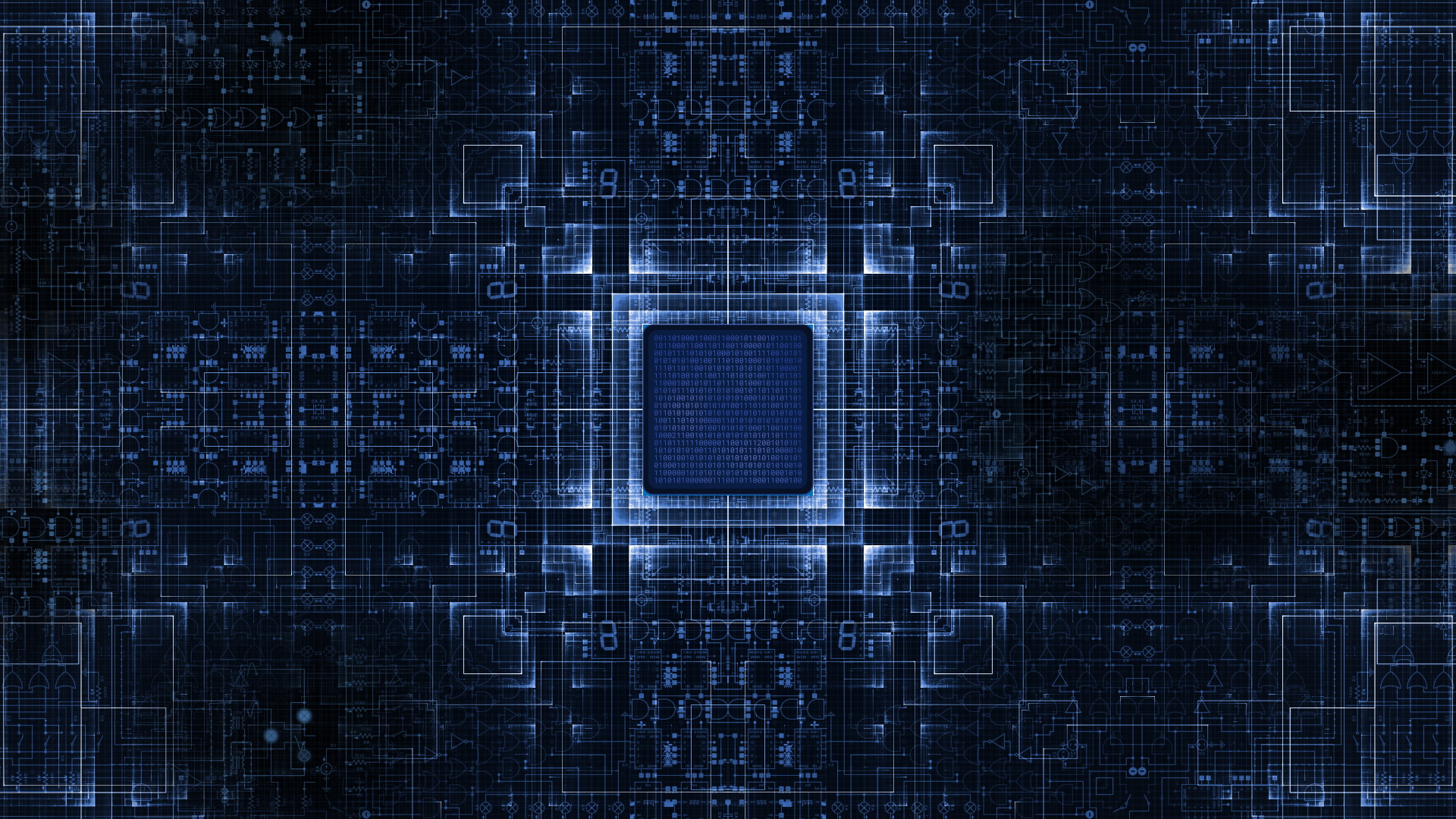Description: A blue and black background with a square in the middle of it and a lot of smaller squares in the middle.