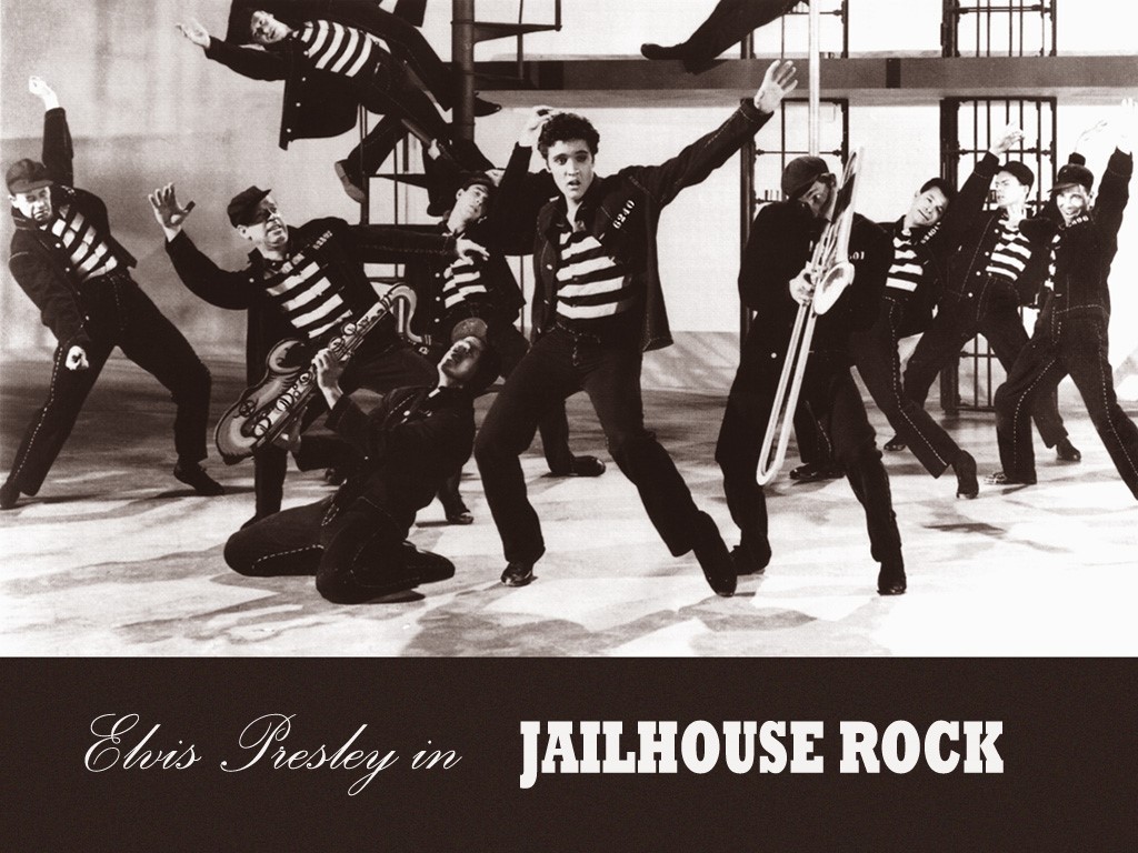 Description: A group of men in striped shirts and ties dancing on a stage with a microphone and a microphone in the air.
