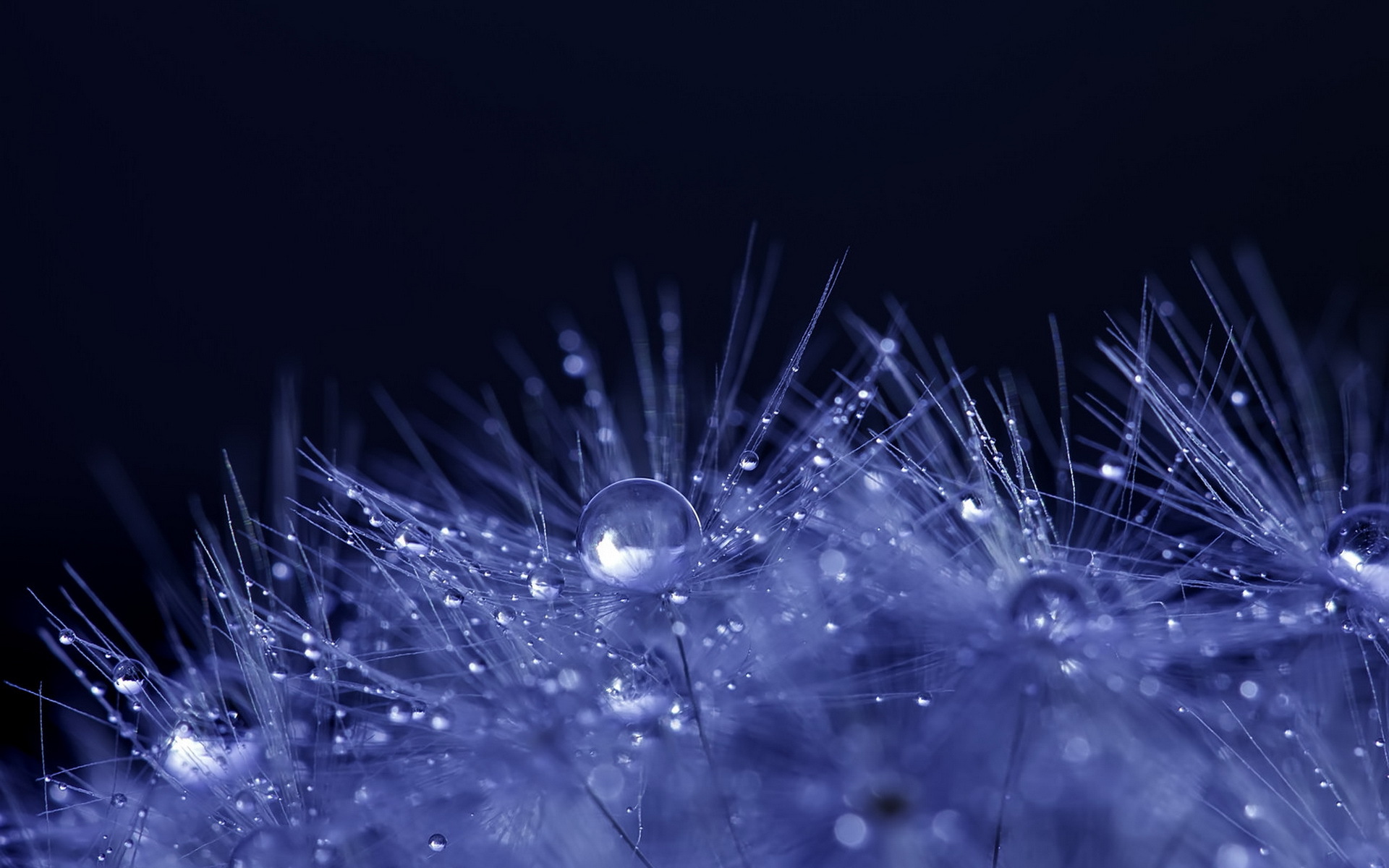 Description: A close up of a dandelion with water droplets on it's petals and a dark background.