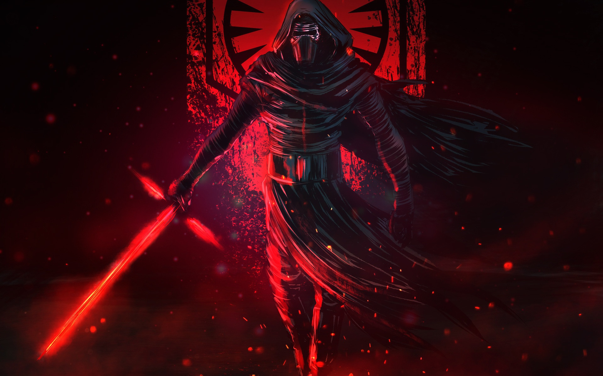 Description: A painting of a person with a sword in a dark room with red light coming from behind it and a red light coming from behind.