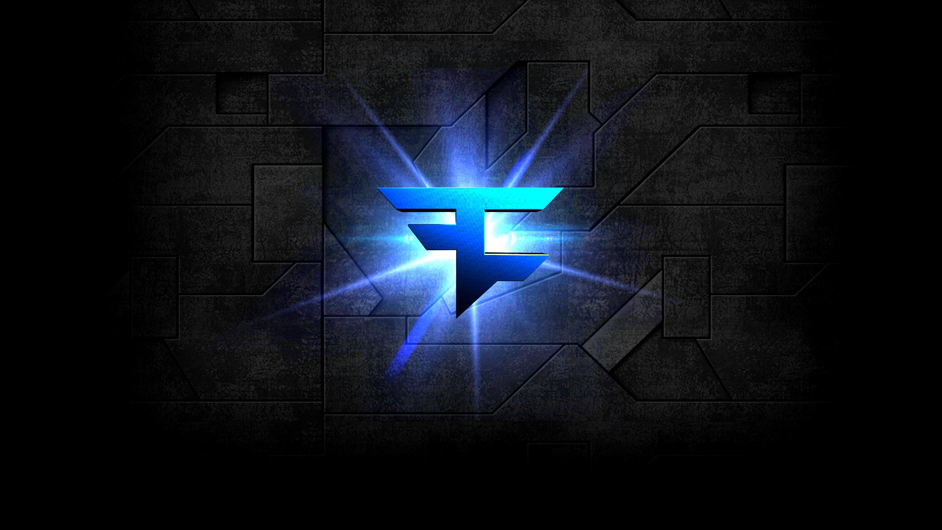 Description: A dark background with a blue logo on it and a blue light coming out of the center of the image.