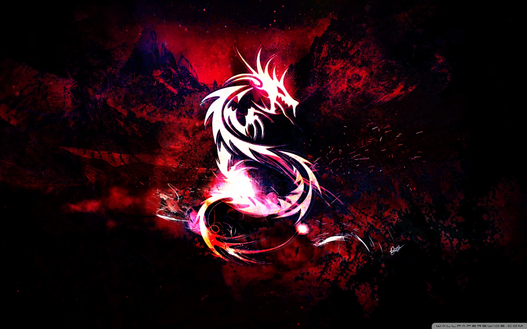 Description: A dark background with a dragon on it's side and a red and black background with a white dragon on it's side.