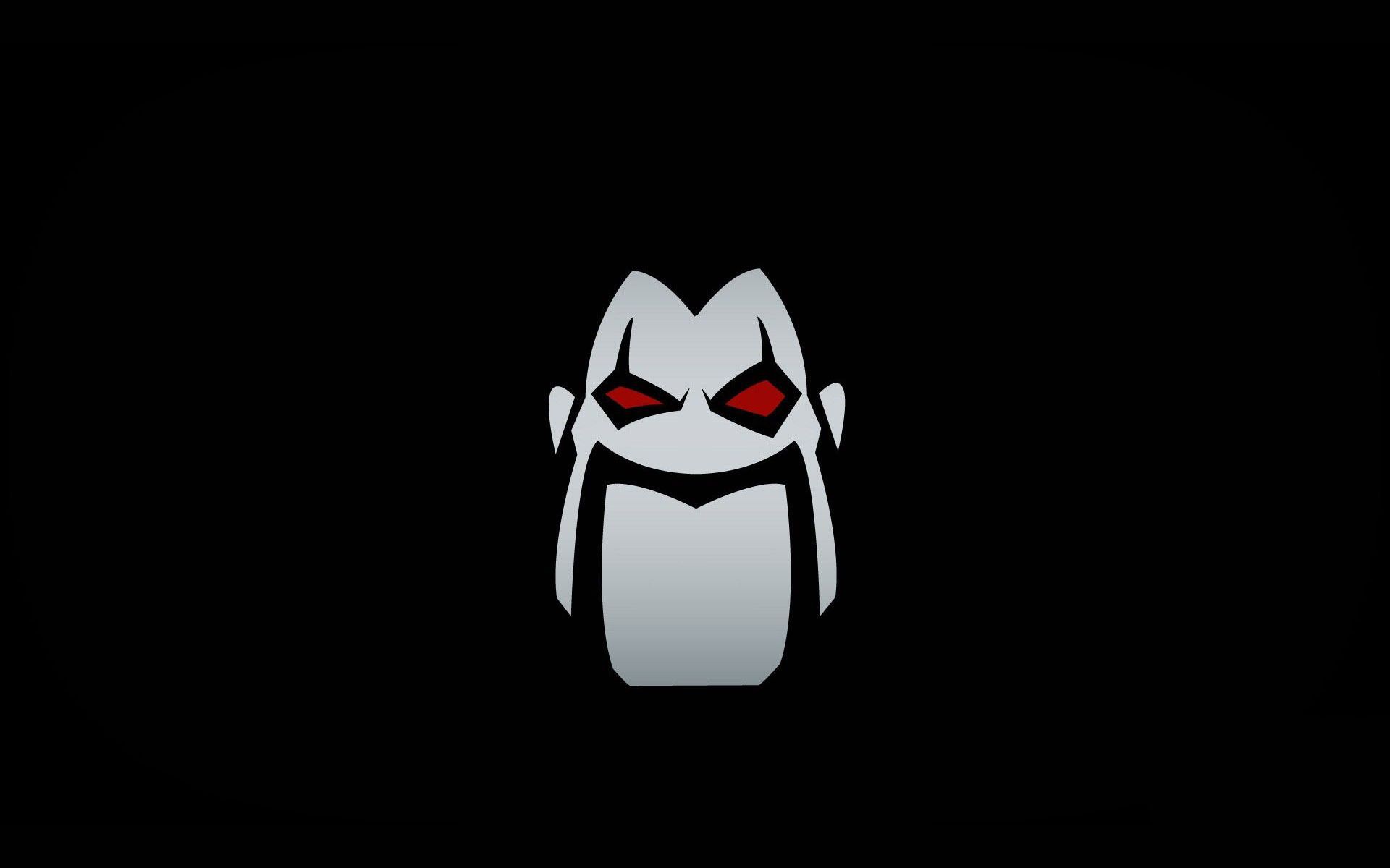 Description: A dark background with a white and red evil face on it's face and red eyes on the upper half of the face.