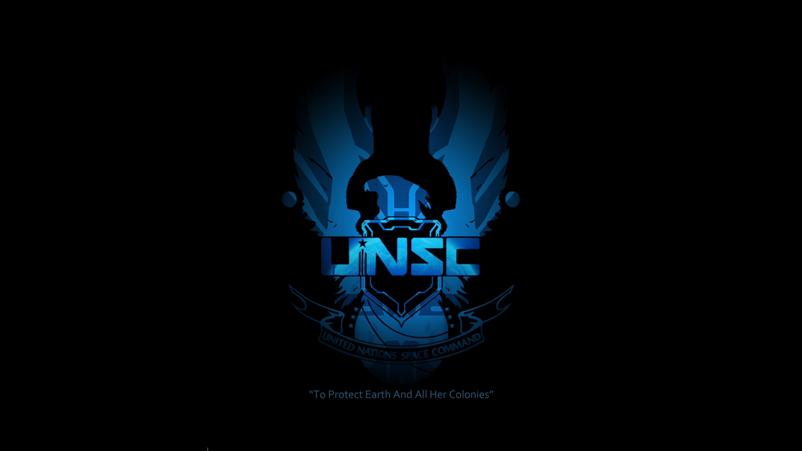 Description: A dark background with a stylized image of a man in a helmet and a helmet on his head and the words unsc.