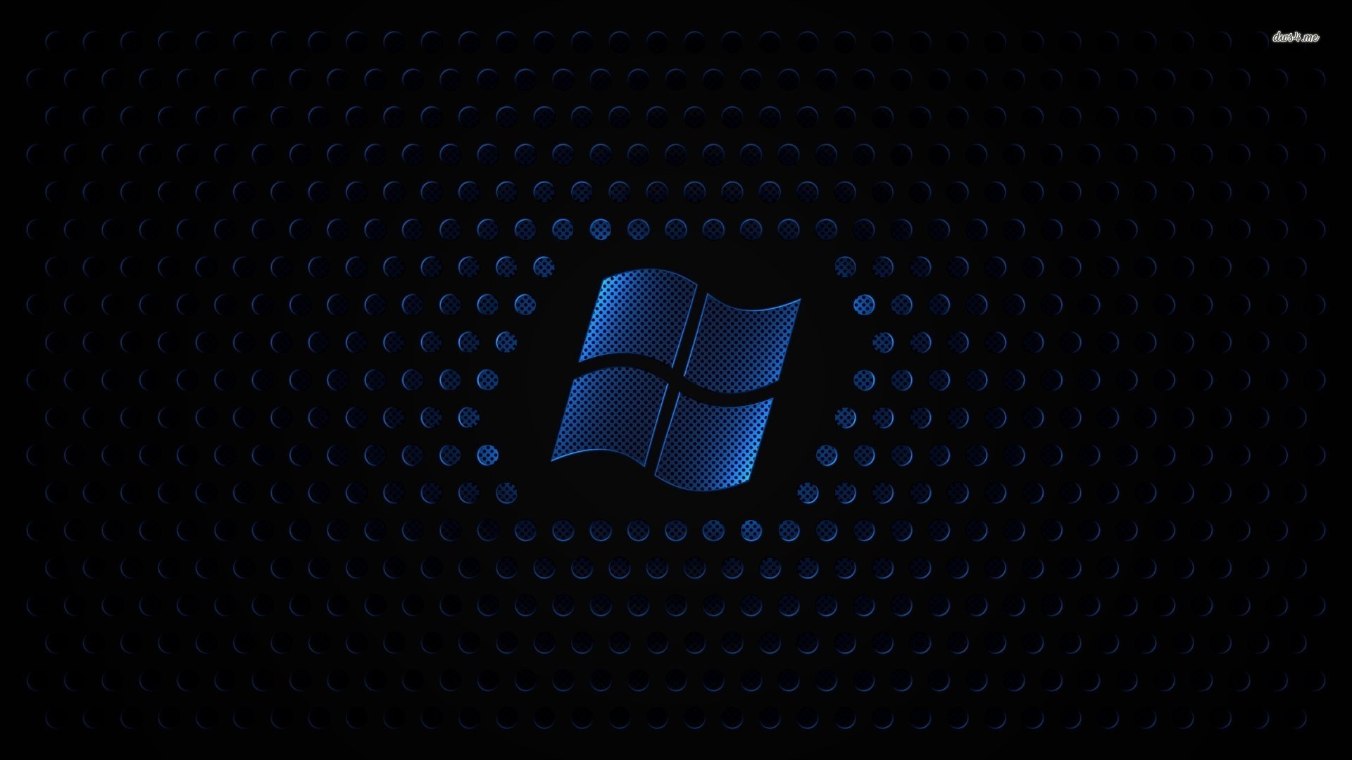 Description: A dark blue background with a blue logo on it and a black background with dots and circles around it.