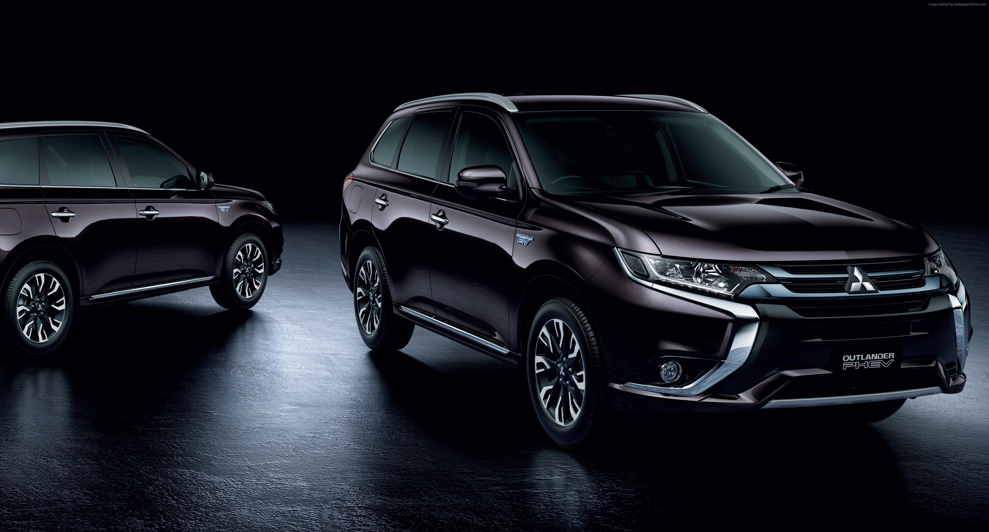 Description: Two dark colored cars side by side in a dark room with a black background and a black background with a white border.