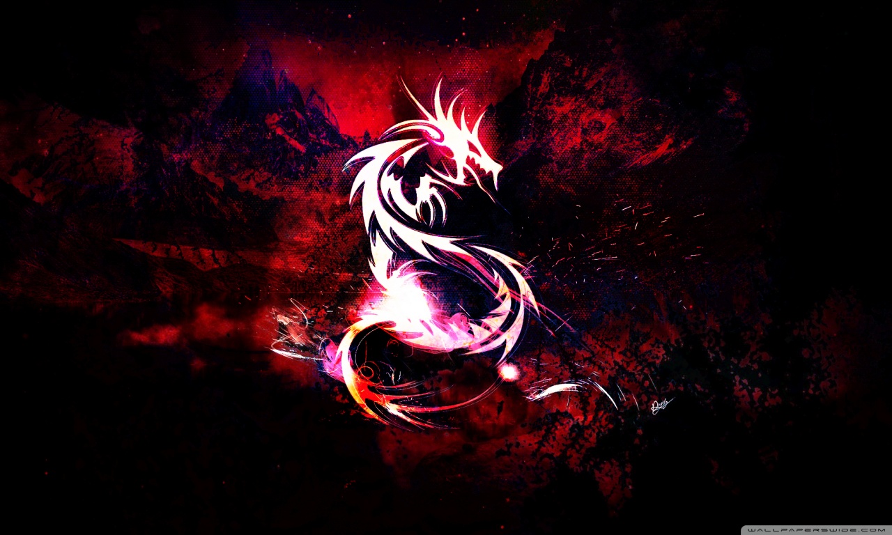 Description: A dark background with a dragon on it's side and a red and black background with a white dragon on it's side.